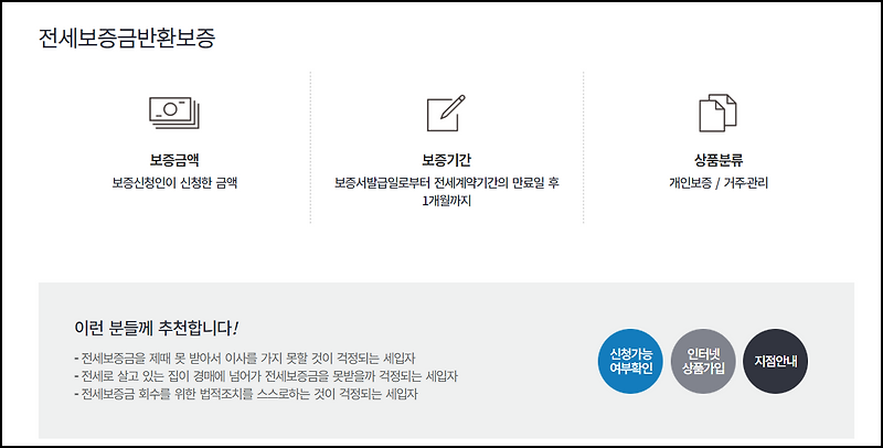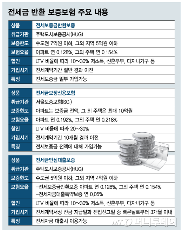 전세보증금 반환을 위한 보증보험의 조건, 비용, 종류 등의 내용 요약