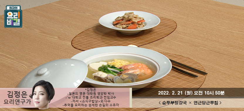 [최고의 요리 비결] 김정은 요리연구가 순두부계란국 연근무침, 감태김밥, 오징어해초무침 만드는 법 만들기 레시피